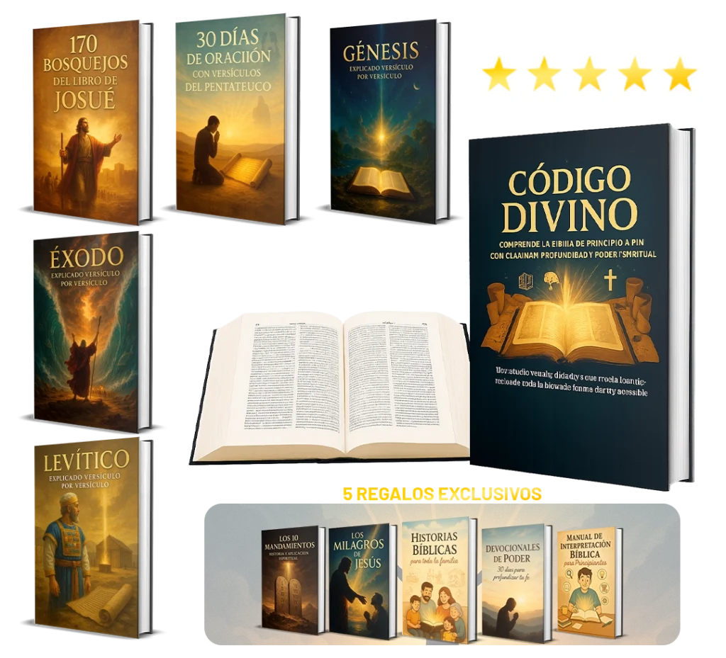 Al adquirir CÓDIGO DIVINO hoy, recibirás totalmente GRATIS estos 4 regalos exclusivos que complementarán tu estudio y crecimiento espiritual: